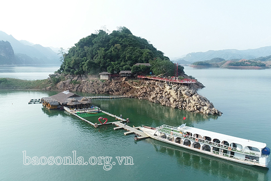 Tiếp tục hành trình để biết thêm về các mô hình, cách làm hay trong xây dựng nông thôn mới của huyện Quỳnh Nhai, chúng tôi lên thuyền máy ngược thượng nguồn sông Đà thăm đảo Trái Tim, Vịnh Uy Phong; khu di tích cây đa Pắc Ma, Tôn tượng A Di Đà, Miếu thờ Long Vương, công trình Cột mốc tại khu vực huyện lỵ cũ của huyện Quỳnh Nhai, trải nghiệm khu du lịch cộng đồng kết hợp tắm khoáng nóng bản Bon (xã Mường Chiên). Trong hành trình, chúng tôi có cơ duyên gặp và trò chuyện với anh Là Văn Phong, Giám đốc HTX Quỳnh Nhai Travel. Sau khi tốt nghiệp đại học kinh tế trở về quê hương, năm 2017, anh cùng nhóm bạn thành lập HTX Quỳnh Nhai Travel phát triển du lịch trải nghiệm lòng hồ. Giờ đây, HTX đã mở rộng quy mô hoạt động với 2 tàu chở khách có sức chứa từ 40-60 người; hình thành các Tour tham quan lòng hồ.
