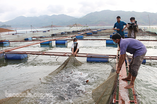 Ngoài phát triển du lịch, hàng nghìn hộ dân các xã dọc sông Đà đang tận dụng mặt nước phát triển nuôi cá lồng. Thăm mô hình nuôi cá lồng của ông Lò Văn Khặn, bản Co Trặm, xã Chiềng Bằng - người tiên phong nuôi cá lồng của xã. Ông Khặn kể về duyên nghiệp với lòng hồ: Khi lòng hồ tích nước, đất sản xuất ít, để mưu sinh tôi đã dùng tiền đền bù di dân sắm thuyền hành nghề đánh bắt cá, tôm trên sông. Năm 2010, được tham gia tập huấn kỹ thuật nuôi trồng thủy sản do huyện tổ chức và được hỗ trợ 1 lồng cá. Năm 2012 ông đã vận động các hộ trong bản thành lập HTX thủy sản Chiềng Bằng. Sau hơn 10 năm gắn bó với nghề nuôi cá ông Khặn đã có trên 84 lồng cá, năm 2020, gia đình ông thu về gần 1 tỷ đồng.