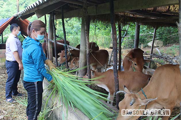 Người dân xã Xuân Nha (Vân Hồ) phát triển mô hình nuôi bò nhốt chuồng.