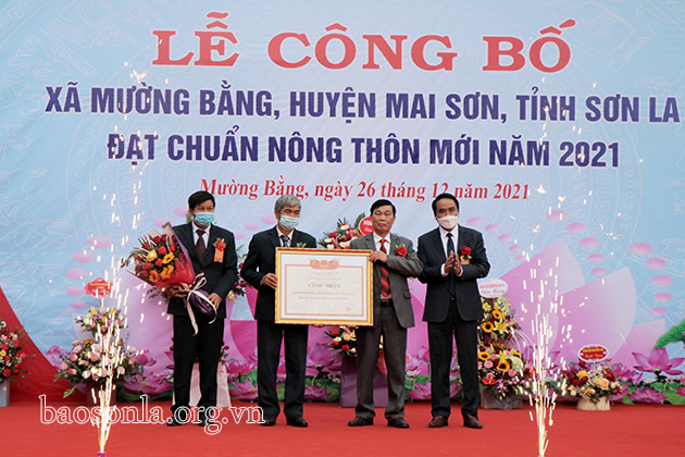 Ngày 26/12, huyện Mai Sơn đã tổ chức Lễ công bố xã Mường Bằng đạt chuẩn nông thôn mới. Dự Lễ công bố có các đồng chí: Hoàng Quốc Khánh, Phó Bí thư Tỉnh ủy, Chủ tịch UBND tỉnh; Lê Hồng Minh, Phó Chủ tịch UBND tỉnh; đại diện một số sở, ngành của tỉnh và huyện Mai Sơn.