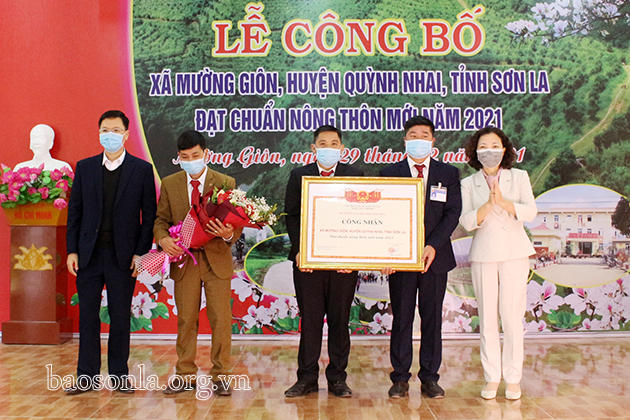 Ngày 29/12, huyện Quỳnh Nhai đã tổ chức Lễ công bố xã Mường Giôn đạt chuẩn nông thôn mới. Dự Lễ công bố có đại diện Sở Nông nghiệp và PTNT; lãnh đạo huyện Quỳnh Nhai, cùng đông đảo cán bộ, đảng viên và nhân dân xã Mường Giôn.