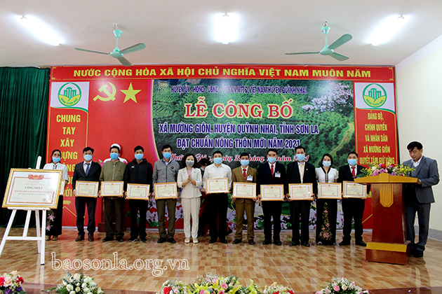 Nhân dịp này, UBND tỉnh tặng Bằng khen 4 tập thể, 8 cá nhân; UBND huyện tặng Giấy khen 8 tập thể, 7 cá nhân có thành tích xuất sắc trong thực hiện nhiệm vụ xây dựng nông thôn mới tại xã Mường Giôn.