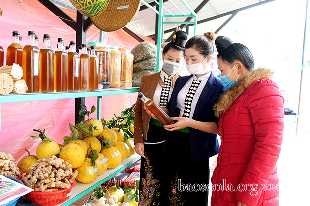 Các đại biểu tham quan gian hàng trưng bày sản phẩm nông nghiệp của địa phương.