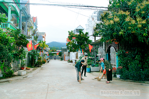 Nhân dân bản Hua Mường giữ gìn đường ngõ xóm sạch đẹp.