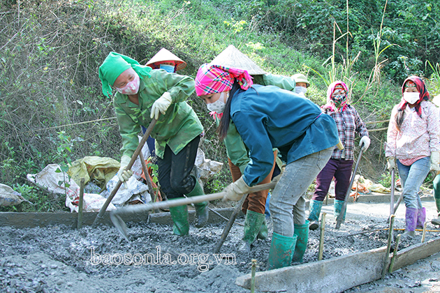 Còn anh Bàn Văn Lún, bản Suối Tiếu, thường xuyên đưa con đi học, mỗi khi trời mưa xuống đường lầy lội, xe máy không thể đi được, các con anh phải đi bộ để đến trường. Quá hiểu nỗi khổ do không có đường bê tông, nên khi thống nhất việc làm đường, gia đình anh Lún tích cực tham gia với mong muốn con đường sớm hoàn thành để việc đi lại của người dân bớt khó khăn hơn. Anh Lún cho biết: Dù cuộc sống còn khó khăn, nhưng khi thống nhất đóng góp 1 triệu đồng làm đường, gia đình tôi cũng đồng thuận. Đồng thời, cử 2 lao động tham gia đổ bê tông. Có con đường mới các con, cháu đi học chữ sẽ đỡ vất vả hơn.