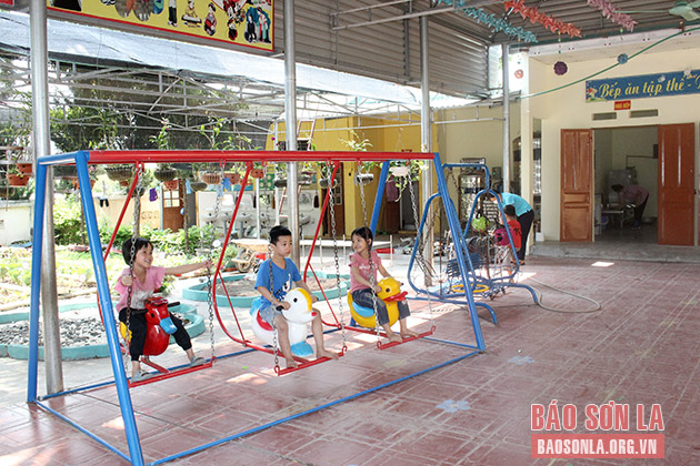Sân chơi cho các bé tại Trường mầm non Ánh Sao, xã Chiềng Pằn, huyện Yên Châu, được đầu tư theo chuẩn quốc gia mức độ II.