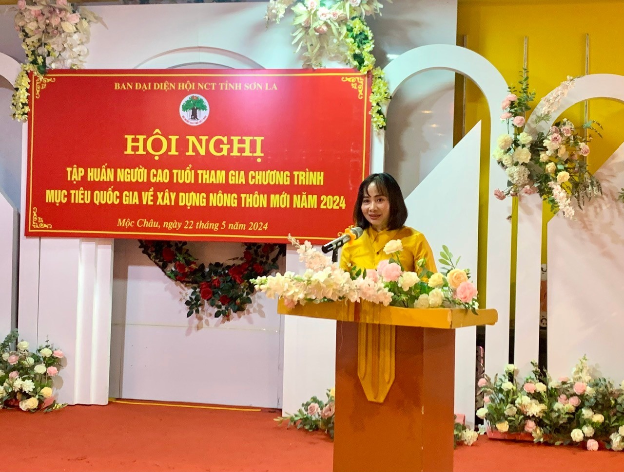Thực hiện Chương trình phối hợp số 3054/CTPH-SNN-NCT ngày 08/9/2023 giữa Sở Nông nghiệp và Phát triển nông thôn với Ban đại diện Hội người cao tuổi tỉnh Sơn La giai đoạn 2023-2028. Ngày 22-23/5/2024, tại huyện Mộc Châu Hội Người cao tuổi tỉnh Sơn La phối hợp với Văn Phòng Điều phối Nông thôn mới tỉnh Sơn La tổ chức Hội nghị tập huấn người cao tuổi tham gia chương trình Mục tiêu Quốc gia về xây dựng Nông thôn mới năm 2024, dự Hội nghị có đồng chí Lê Hữu Đê - Nguyên Phó Trưởng ban Tuyên giáo Tỉnh uỷ Sơn La, Phó Trưởng Ban Thường trực đại diện Hội người cao tuổi tỉnh Sơn La, đồng chí Nguyễn Thị Hoa - Phó Chủ tịch UBND huyện Mộc Châu, đồng chí Dương Gia Định - Phó Chánh Văn phòng Thường trực Văn phòng Điều phối Nông thôn mới tỉnh và gần 40 đại biểu là Trưởng, Phó Ban đại diện các huyện, thành phố và Chủ tịch hội Người cao tuổi các xã đã, đang phấn đấu đạt chuẩn nông thôn mới của 6 huyện Mộc Châu, Vân Hồ, Mai Sơn, Phù Yên, Bắc Yên, Yên Châu.