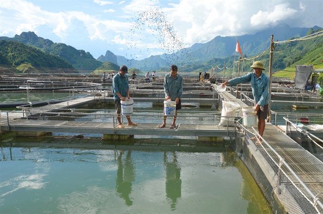 Nuôi cá lồng trên hồ thủy điện Sơn La.