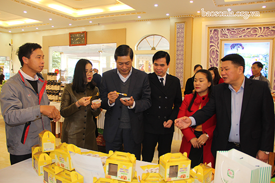 Thường trực tỉnh ủy tham quan các sản phẩm tham gia OCOP cấp tỉnh Sơn La năm 2020.