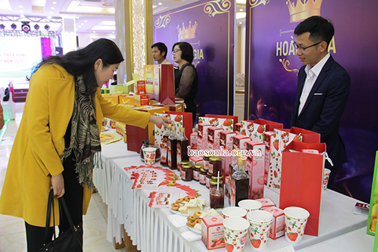 Các đại biểu thăm quan gian hàng tham gia OCOP cấp tỉnh Sơn La năm 2020.